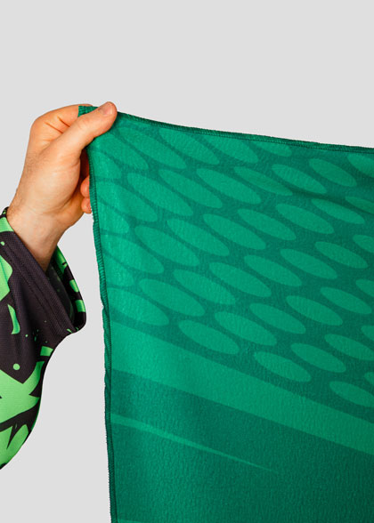 Габардин (100% полиэстер) — практичная и износостойкая ткань с плотным плетением и аккуратной фактурой. Хорошо держит форму, почти не мнётся и подходит для активного использования. Материал быстро сохнет, не впитывает лишнюю влагу и легко очищается. Отличный вариант для спортивных аксессуаров и изделий, где важны прочность и аккуратный внешний вид.